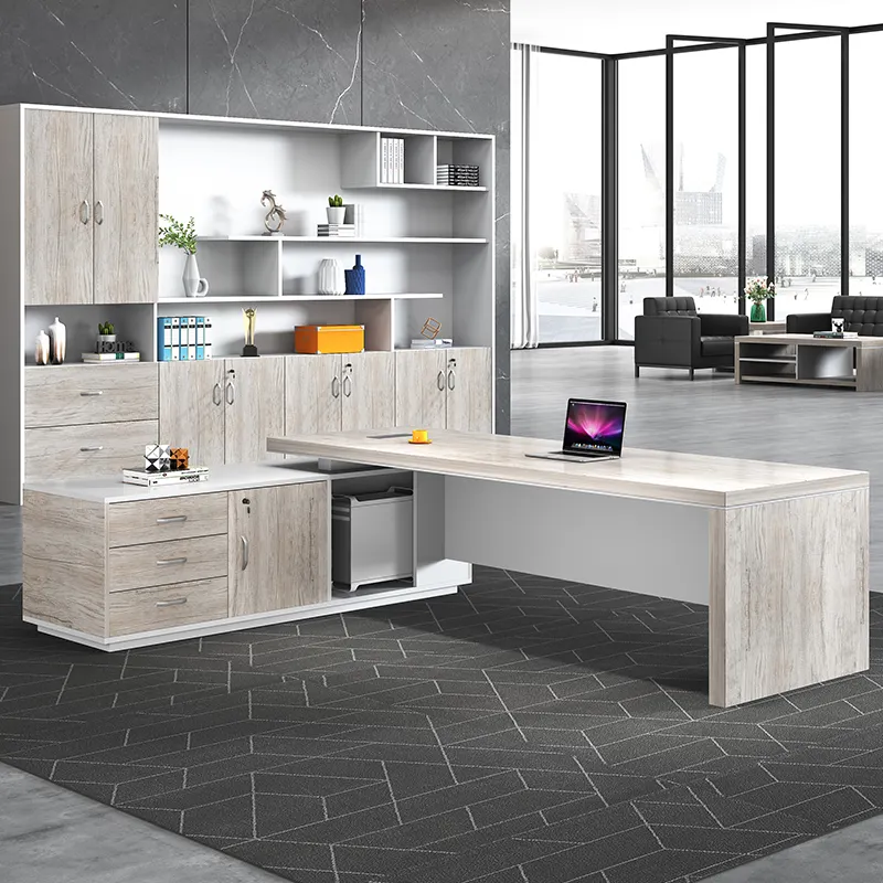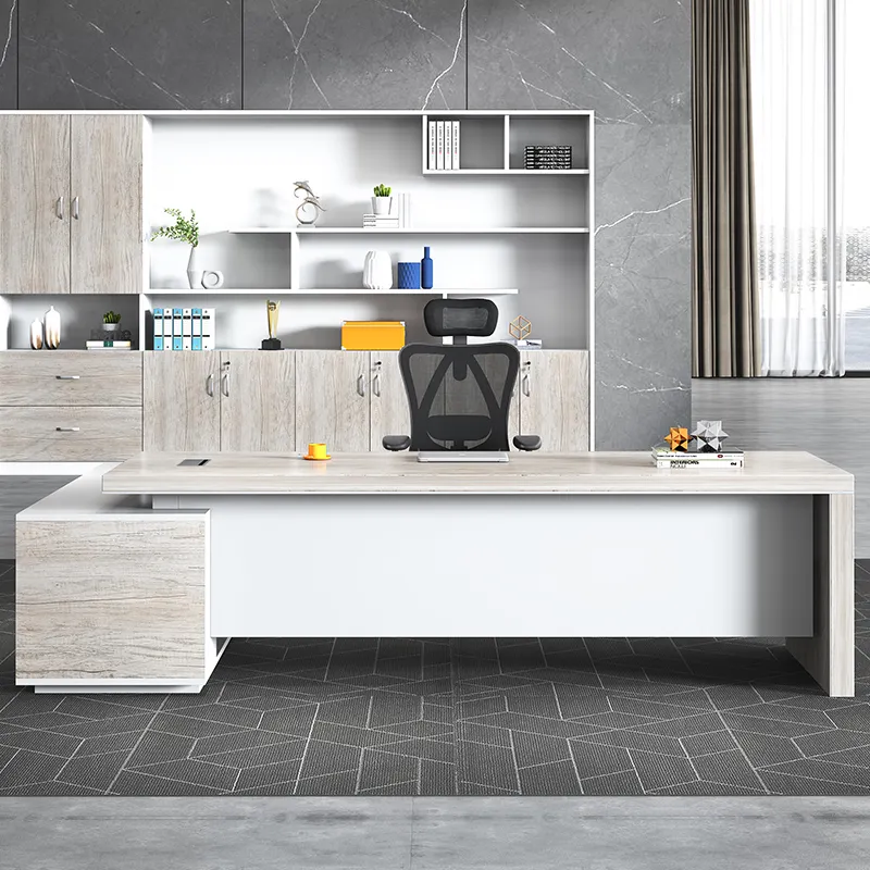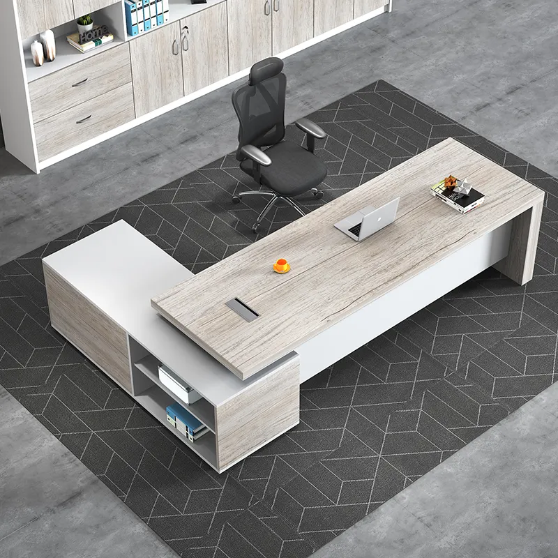 These executive desks are made of 36mm melamine top, providing a spacious and smooth work surface for executives and professionals. The wooden leg, along with the modesty panel and side cabinet complete with lock, key, handle, and wire manager, ensure maximum durability and ample storage space for all your office essentials. Designed to meet the needs of modern workplaces.
